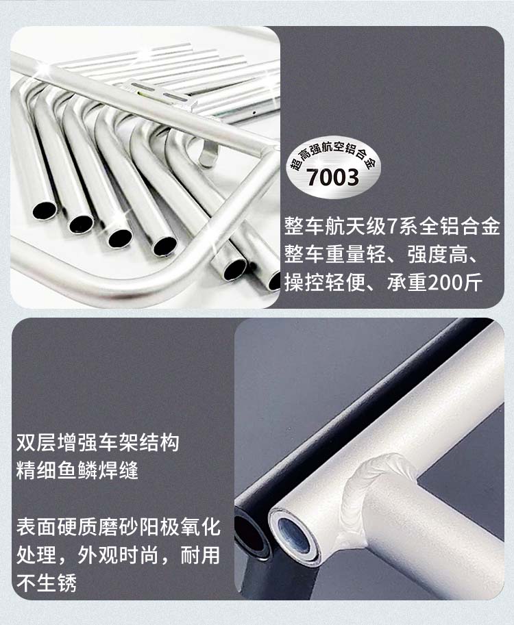 4、精細(xì)的魚鱗焊接工藝,重量輕、 強(qiáng)度高、操控輕便、承重 200 斤;